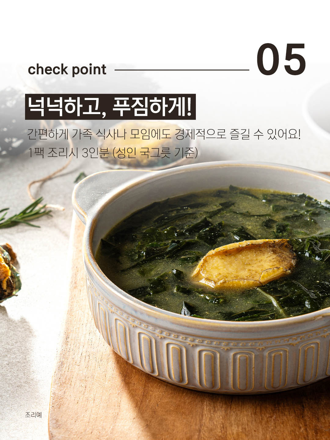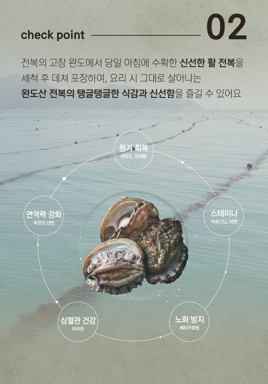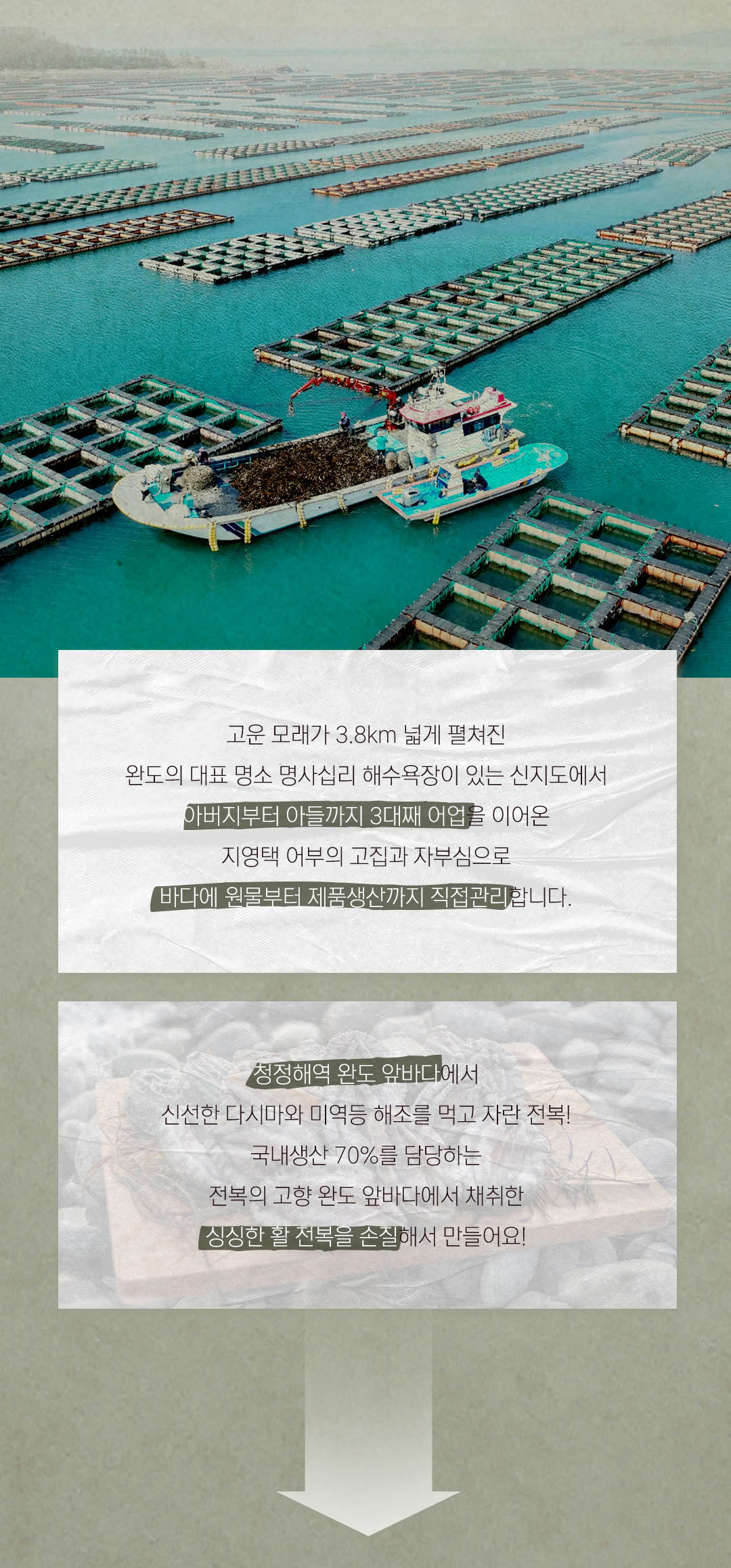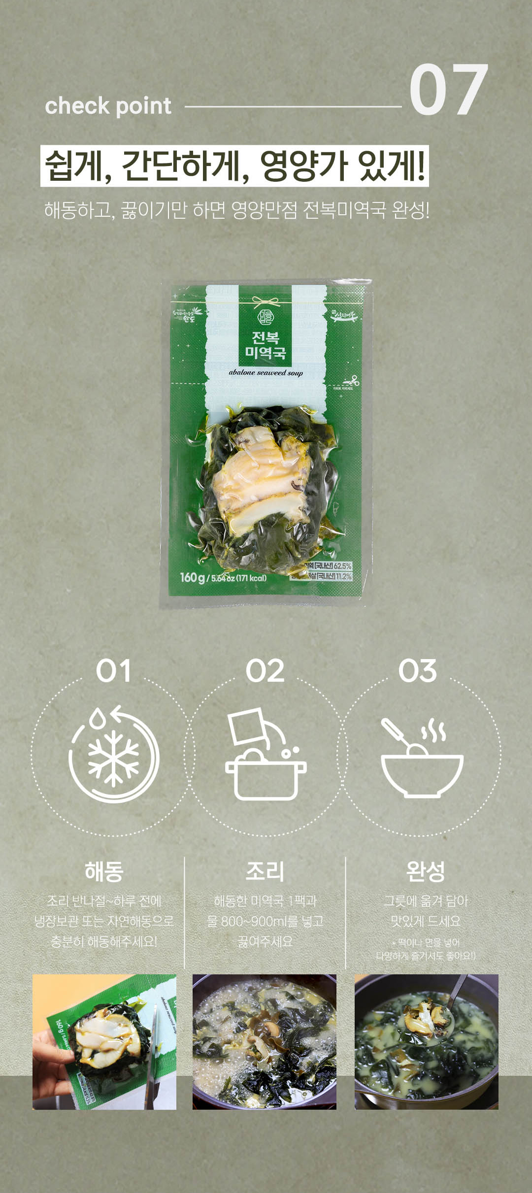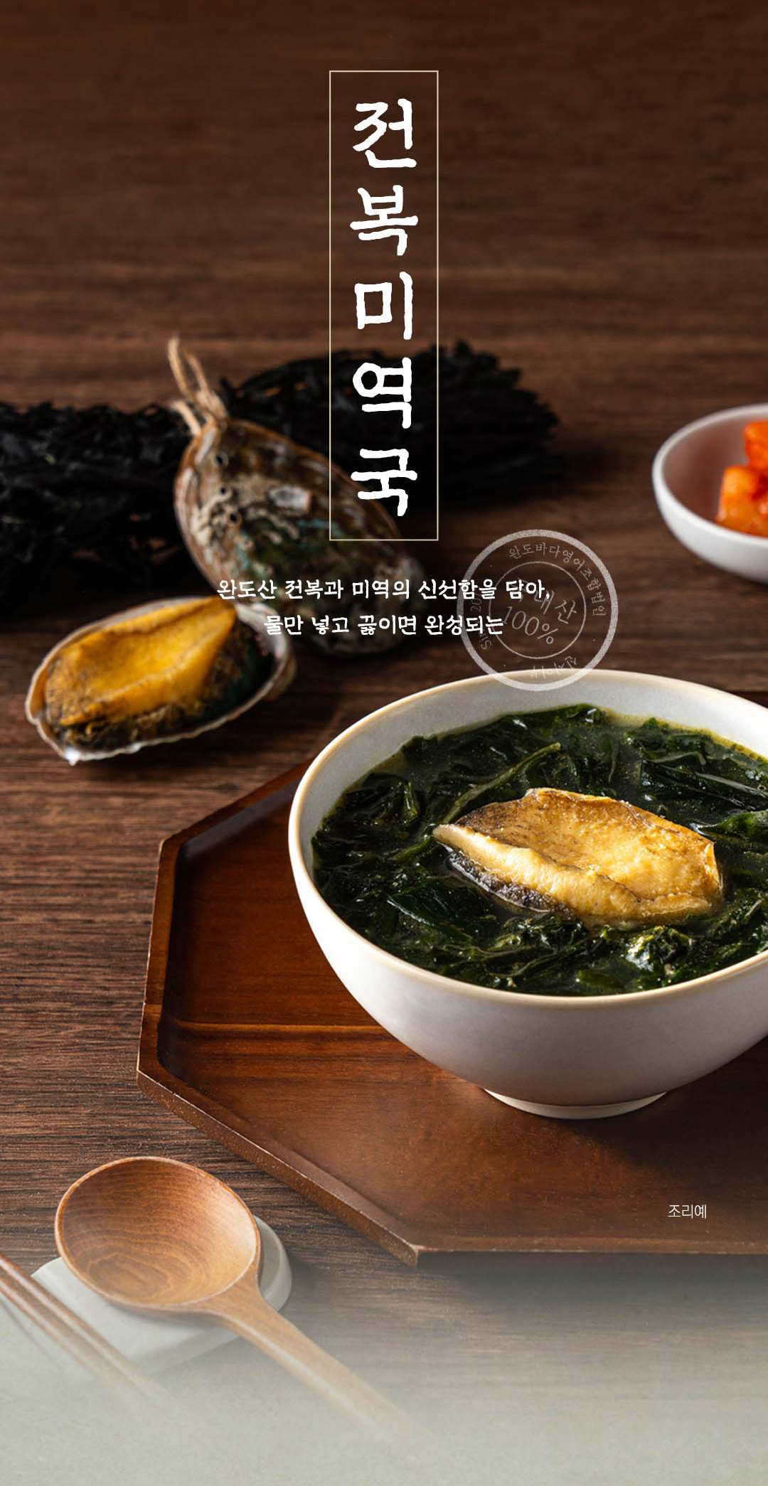 100%완도산 전복과 조미료를 전혀 사용하지 않은 전복미역국입니다