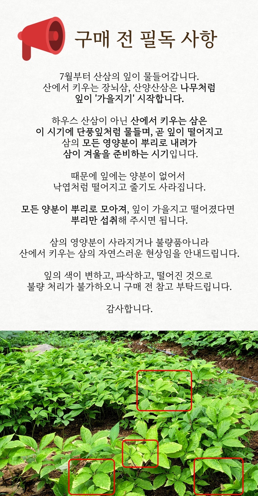 청정지역 강원도 깊은 산골에서 재배한 삼